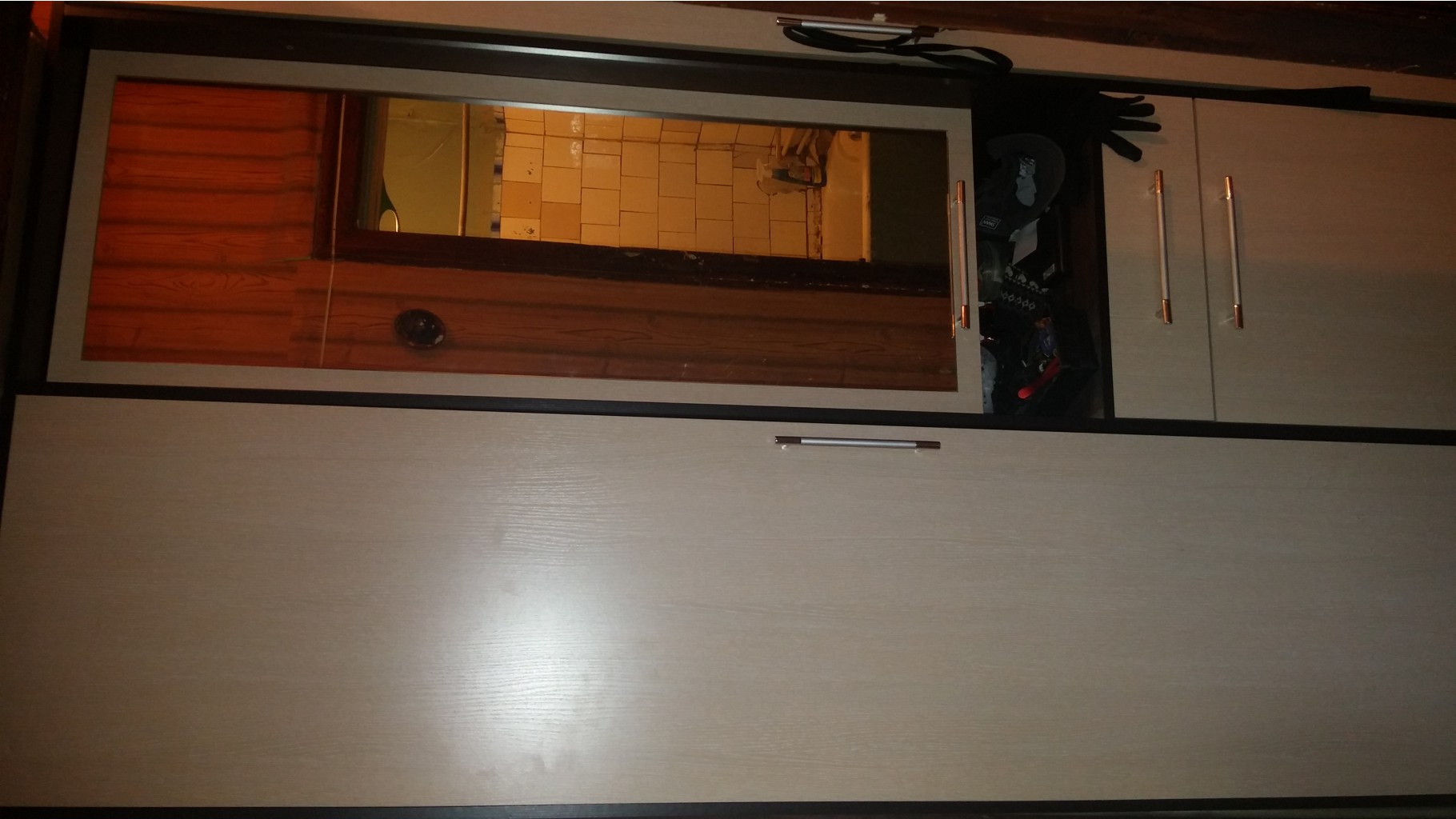 Куплена год назад, в идеальном состоянии. Два отделения с вешалками, среднее отделение с зеркалом и полками.